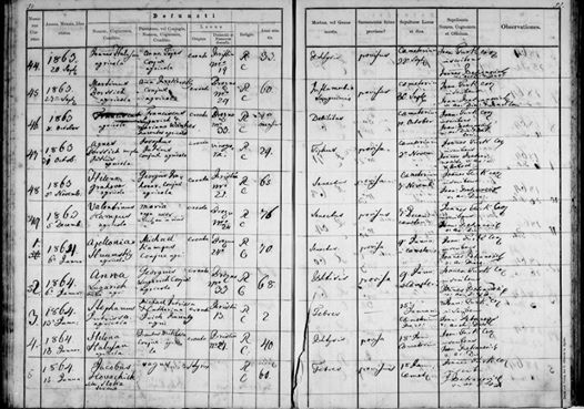 Fotografija: izpis iz mrliške matične knjige župnije Vinagora na Hrvaškem.